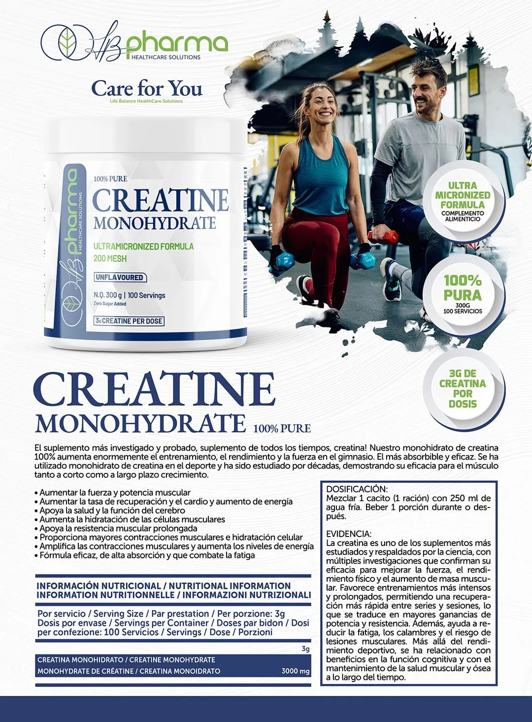Creatina monohidrato de alta pureza, formulada para apoyar el rendimiento físico y el metabolismo energético en el día a día. Contribuye a la producción de energía celular (ATP), ayudando a mejorar la fuerza, la vitalidad y la recuperación muscular. Indicada tanto para personas activas como para quienes buscan un apoyo general en su bienestar físico.